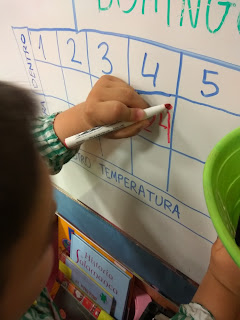 O xoves pasado, aproveitando que foi unha semana de moitísimo calor, falamos do que era e para que serve un aparatiño (case tan curioso como o noso "mirabichos") que temos na aula: unha estación meteorolóxica. Sabemos que nos indica o día (en inglés !), a hora, e o que máis nos importa,... a temperatura que hai na aula (e xa sabemos que se mide en graos).