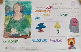 O noso proxecto Egeria levounos esta semana a coñecer a duas figuras moi importantes. Por un lado, Leonardo da Vinci pois a súa famosa Gioconda podemos visitala no Museo do Louvre en París, lugar polo que fixemos unha pequena visita virtual a través de internet. Descubrimos que ademais de pintor foi inventor e coñecemos algúns dos seus inventos máis orixinais. Despois fixemos unha tarefa impresa para recoller por escrito parte do aprendido.